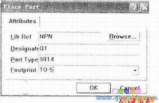 第一行:Lib Ref(元件名称).输入元件符号在元件库中的名称,如在元件库中的名称是RES2,三极管在元件库中的名称是NPN或等,在放置元件时必须输入,但不会在原理图中显示出来。