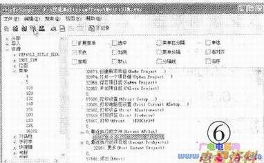 5、将图中右边框中第一项“0,&File”改成“0,文件(&File)”;将第二项“57600,&New$09Crtl+N”改成“57600,创建新文件(&New)$09Crtl+N”。注意:最前面的数字为程序语句编号,不能更改;“&”后面的英文就是要汉化的内容(注:个别地方要汉化的英文内容会出现在“&”的前面),将翻译成的中文意思输入后,如要保留英文内容可加上括号,如不需要保留英文内容可删除;“$”后面的内容不能改,“l+N”表示快捷键。电子仿真软件Multisim7基本界面上第一个菜单“File”下方的各项汉化完成后如图5和图6所示。