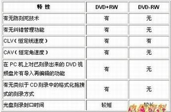 DVD-RW的优点是兼容性好,而且能够以DVD视频格式来保存数据,因此可以在影碟机上进行播放。但是,它一个很大的缺点就是格式化需要花费一个半小时的时间。另外,DVD-RW提供了两种记录模式:一种称为视频录制模式;另一种叫做DVD视频模式。前一种模式功能较丰富,但与DVD影碟机不兼容。用户需要在这两种格式中做选择,使用不甚方便。