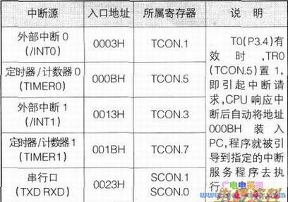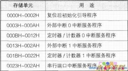 其中0003H、000BH、0013H、001BH、0023H为5个中断源的中断服务程序的人口地址(如下表)。