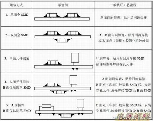 通常针对PCB不同的装联密度,推荐的组装方式有以下几种: