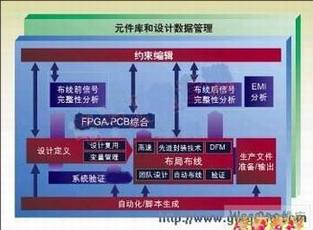 图1表明了一个典型的由前端到后端的综合系统设计。它始于设计定义(原理图输入),该设计定义与约束编辑紧密集合在一起。在约束编辑中,设计者既可定义物理约束又可定义电气约束。电气约束将为网络验证驱动 仿真器 进行布局前和布局后分析。仔细看看设计定义,它还与 /PCB集成相链接。 F /PCB集成的目的是为了提供双向集成、数据管理和在GA与PCB之间执行协同设计的能力。