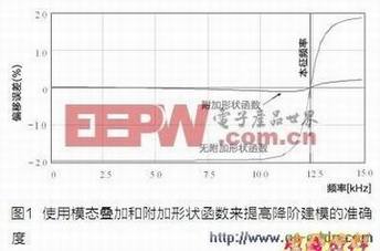 为了对显微结构的固有灵活性精确建模并捕捉二阶和非线性行为,需要更适当的降阶建模方法。一种方法是模态叠加,提供转换器的最高效表达。模态叠加采用最低数量的状态变量来捕捉的结构的真实弹性。通过改变模型生成过程中包含的固有模式数量,很容易做到速度和准确度平衡。可以添加附加形状函数(additional shape function),来提高系统模拟的准确度。图1显示了一个示例,说明如何使用模态叠加和附加形状函数来实现转换器上的封装效果的预期准确度。从实验室测量结果中提取模型和要比确定刚度更容易,所以这种模型的硅验证非常直接。这种高度准确的降阶建模方法应当用于组件和系统的低级检验,且必须结合对制造分布的统计建模。