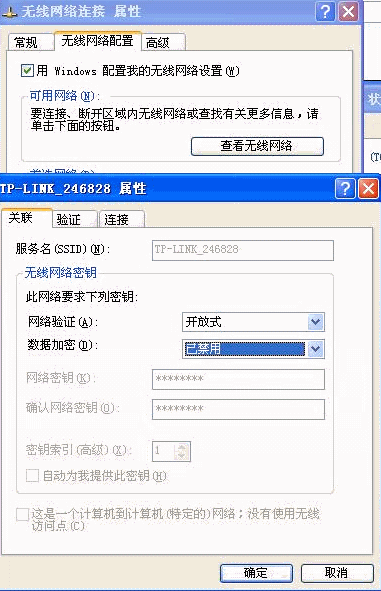 4.选择可用网络的属性,在无线网络密钥中核对网络验证是否与路由器中加密方式一致。如果不一致,请先修改验证