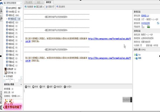 在菜单的左侧列出了很多游戏,这个要根据你的PSP上安装的游戏来选择相应的游戏,比如《怪物猎人》,那么就点击菜单中的“怪物猎人”,下面列出很多服务器,我们选择电信二区,然后在右下角选择一个房间,双击进入房间,我们看到这个房间一共两个人,除了fae代表我之外,还有一个叫“神来”的玩家,这时你在PSP设备上就可以尽情的和他对战了。