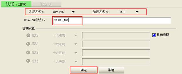 例如:在“TP-LINK_FAE”这个无线路由器上,无线安全的设置是:
