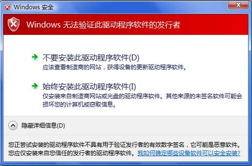 单击安装开始安装,安装程序将会自动安装驱动程序和客户端程序,如果在安装过程中出现了关于驱动软件数字签名验证的对话框: