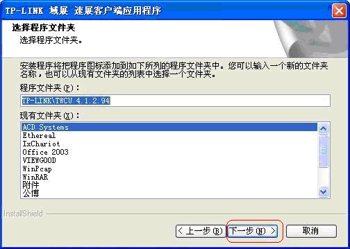 5) 选择程序文件夹,最好保持默认,点击下一步。