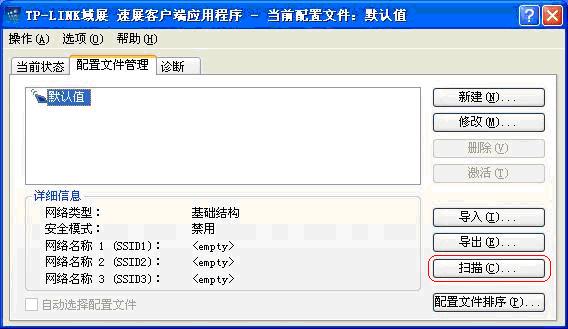6) 要在无线网卡中进行加密设置,点击配置文件管理中的安全选项。