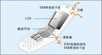 仍旧受紧凑设计趋势的推动,实现高分辨率LCD及相机将使设计者面临多种挑战,其中一个主要设计考虑便是这些新模块对电磁干扰(EMI)的敏感性。对于目前流行的许多手机(尤其是翻盖型手机)来说,彩色LCD或相机CMOS传感器通过连接在手机(上下)两个主要部分之间的柔性或长走线PCB与基带控制器相连。一方面,该连接线会受到由天线辐射出的寄生GSM/CDMA频率的干扰。另一方面,由于高分辨率CMOS传感器及TFT模块的引入,数字信号工作于更高的频率上,从而使该连接线会像天线一样产生EMI/RFI或可能造成ESD危险事件。总之,在上述两种情况下,所有这些EMI及ESD干扰均会破坏视频信号的完整性,甚至损坏基带控制器电路。