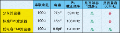 为抑制这些EMI辐射并保证正常的数据传输,可考虑实现几种滤波器解决方案,这可通过使用分立阻容滤波器或集成的EMI滤波器来实现。