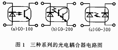 光电耦合器的主要结构是把发光器件和光接收器件组装在一个密闭的管壳内,然后利用发光器件的管脚作输入端,而把光接收器的管脚作为输出端。当在输入端加电信号时,发光器件发光。这样,光接收器件由于光敏效应而在光照后产生光电流并由输出端输出。从而实现了以“光”为媒介的电信号传输,而器件的输入和输出两端在电气上是绝缘的。这样就构成了一种中间通过光传输信号的新型半导体电子器件。光电耦合器的封装形式一般有管形、双列直插式和光导纤维连接三种。图1是三种系列的光电耦合器电路图。