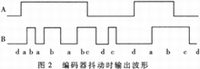 当旋转编码器反向旋转时,译码器输出的状态顺序为d、c、b、a、d、c、b、a……。这种情况的分析方法与正向旋转的分析方法相同,这里不再叙述。