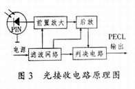 光接收电路的功能是将光纤传输中的微弱光信号转变为电信号.它主要由前放、后放以及判决电路组成(见图3).