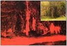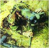 (图)右上小图为自然光下观察到的情况,大图为热成像观察到的图象,从中可以看到掩蔽在树丛中的人员。热成像仪使依靠自然伪装的保护完全失效)