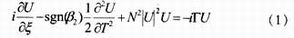 其中U,ξ,T分别代表光场包络幅值,传输距离及时间的无量纲归一化参量,而β2是光纤二阶色散参量,通常用来表示群速度色散(GVD),N定义为