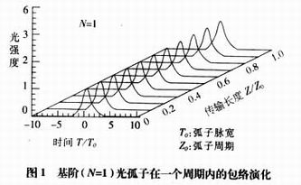 光孤子是指经过长距离传输而保持形状不变的光脉冲,最早是由一名英国海军工程师于1834年偶然人首次提出了利用光纤非线形在反常色散区进行光孤子传输的设想。1980年Bell试验室Mollenewor等人又首次在试验室中观察到了光孤子[2]。