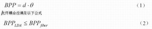 光纤耦合输出激光光束的主要参数除了功率外就是光纤芯径和数值孔径。对于一定芯径和数值孔径的光纤耦合光束而言,其整个耦合过程满足光参数积不变的原理[3]。光参数积定义为光斑直径与该方向的发散角的乘积。对于直径为d 圆形对称的光束,其远场发散角为θ,该光束的光参数积为