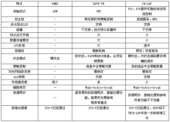 根据IETF所做的调查,支持RSVP-TE、CRLDP和PNNI三种信令协议的厂商比例为21:2:1。对于三种信令协议,业界认为RSVP-TE是最有发展的信令协议。其原因如下: