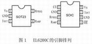 EL6200C有5脚SOT23和8脚SOIC两种封装形式,SOT23封装体积小,能够减少EMI辐射,从而能靠近激光设备放置。SOIC封装的振荡器具有三态输出功能,带有高速输出无效使能的OE引脚。OE引脚可由一高速定时信号在读/写操作期间驱动,以精确控制激光的调制。EL6200C的电流输出振幅达100mAP-P。当有逻辑低电平施加到片选信号CE引脚时,电流输出无效,电源电流降低到毫安级。EL6200C的两种引脚排列如图1所示。