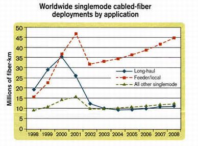光纤光缆产业从长途网络配置市场转向城域网络、以及接入网络的转变,让使用大口径光纤光缆的电信运营商开始注意到小口径的光纤光缆。