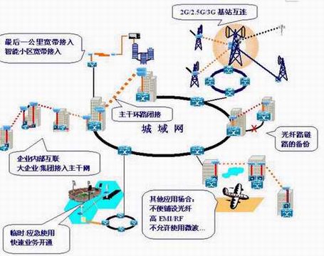 城域网扩展:在现有城域网上向外延伸、连接新的网络或者在网络核心建设SONET环路等。