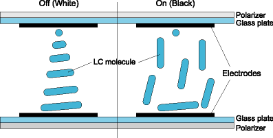 图1 TN+Film的显示器对准液晶于基板的垂直方向,与标准的TFT-LCD一样。