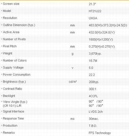另外一个值得我们自豪的是我国京东方(BOE,北京东方电子)集团收购韩国现代显示技术株式会社(Hydis)的TFT-LCD部门后成立的BOE-Hydis所主推的FFS技术。它属于IPS阵营,但它几乎改善了IPS的所有致命缺陷。从它所公布的Panel产品资料来看,各项参数确实达到一个前所未有的高度,譬如最大可视角度已经达到180°。由于它相比IPS有着更高的透光率,所以在实现同等亮度的条件下,它所需要的背光灯会更少,在目前大屏幕液晶显示器和LCD TV由于功耗大幅度上升有违液晶当初所宣扬的节能环保特性的尴尬局面下,就凭这点就有理由让FFS在未来赢得更多关注。遗憾的是由于各种各样的原因,性能出色的FFS一直未能有更大的产量和应用面。