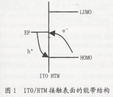 下面从电学及表面性质两个方面,讨论ITO表面处理的作用以及对OLED性能的影响。