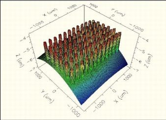 目前,72光纤MPO(USConnec公司将其称为MTP®)仅用于多模光纤。然而,根据发展趋势和过去的应用,SM应占主导地位。MPO连接器可提供12条光纤的正向接触。此外,72光纤MPO配有稍微修改的弹簧,为光纤带的堆叠提供了更大的空间,并且增加了正面压力,因为它含有更多的光纤。即使如此,利用更多光纤实现PC性能仍要求更精确地控制抛光工艺,以确保更好的共面性。泰科电子在抛光工艺和高密度连接器开发方面进行了大量的开发工作(见图4)。这一点通过抛光工艺和装置上控制,并通过用干涉测量方法的端面扫描进行验证(见图5)。