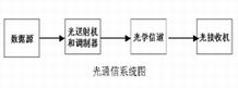 最基本的光纤通信系统由数据源、光发送端、光学信道和光接收机组成。其中数据源包括所有的信号源,它们是话音、图象、数据等业务经过信源编码所得到的信号;光发送机和调制器则负责将信号转变成适合于在光纤上传输的光信号,先后用过的光波窗口有0.85、1.31和1.55。 光学信道包括最基本的光纤,还有中继放大器EDFA等;而光学接收机则接收光信号,并从中提取信息,然后转变成电信号,最后得到对应的话音、图象、数据等信息。下面是光通信系统图。