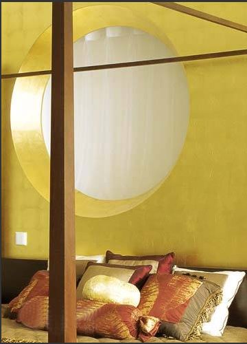 对于圆的想象 具有非常浓厚现代感的金属装饰板,恰到好处地冲淡了室内过于浓重的古典气息,非常夸张的金色倒也契合了房间的整体色调。圆形的中空设计与顶灯相呼应,中空里露出的背景色,更减弱了壁板的视觉冲突,最大限度地启迪了人们的想象力。