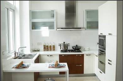 厨房的面积小,把可以利用的空间尽量利用起来,这样生活也就更贴心。如果不介意也不想麻烦的话,也可以把电饭锅、微波炉这一类的厨房家电另外找地方放,一般可以放在餐厅。不过这种方法的不好之处就是东西会显得比较凌乱,影响了房子的整体美观度。